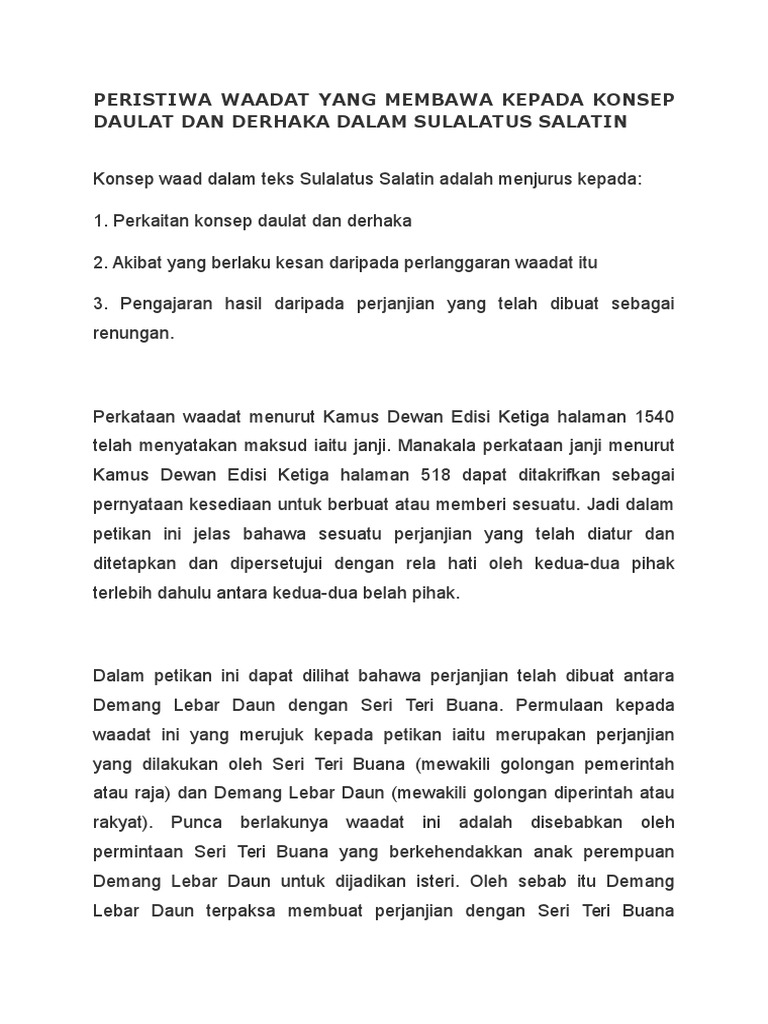 Peristiwa Waadat Yang Membawa Kepada Konsep Daulat Dan Derhaka Dalam Sulalatus Salatin Pdf